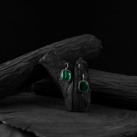 Saanjh Bela Green Square Shape Oxidised Drop Earrings