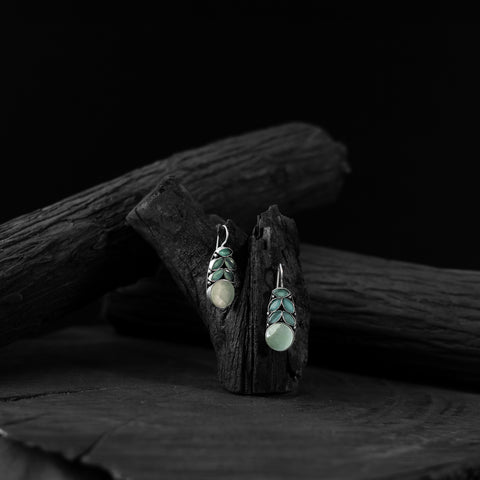 Saanjh Bela Mint Green Leaf Oxidised Drop Earrings