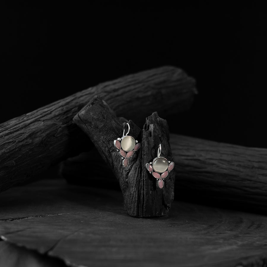 Saanjh Bela Grey & Pink Leaf Oxidised Drop Earrings