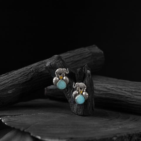 Saanjh Bela Sky Blue Elephant & Leaves Oxidised Earrings