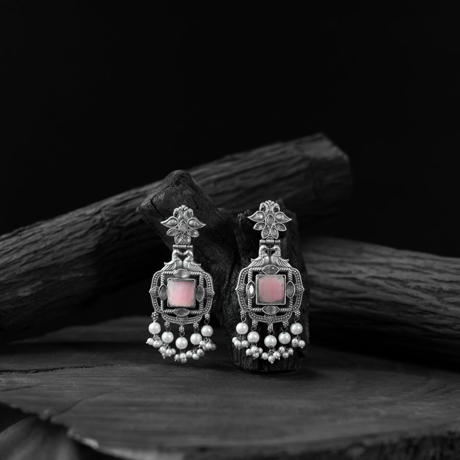Saanjh Bela Pink Swan Oxidised Earrings