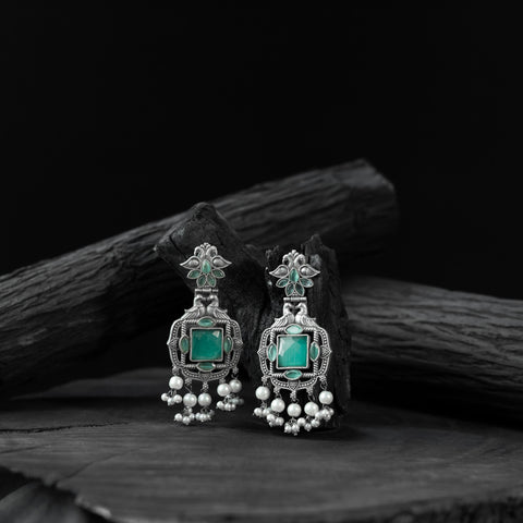 Saanjh Bela Mint Green Swan Oxidised Earrings