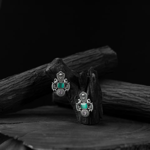 Peacock Saanjh Bela Turquoise Green Oxidised Earrings