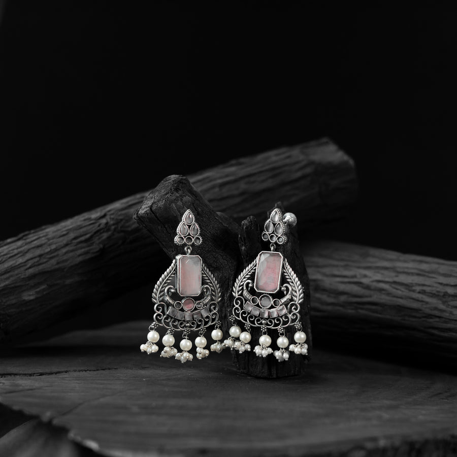 Oxidised handcrafted earrings made with a blend of metal, stones, pearls, beads, and fine detailing. Perfect for festive occasions, weddings, casual outings, office wear, or vacations. Their elegant black and silver tones pair beautifully with everything from casual jeans and flowy dresses to chic office ensembles. A meaningful gift for mother, sister, wife, or girlfriend adding a beautiful touch of tradition to every moment.