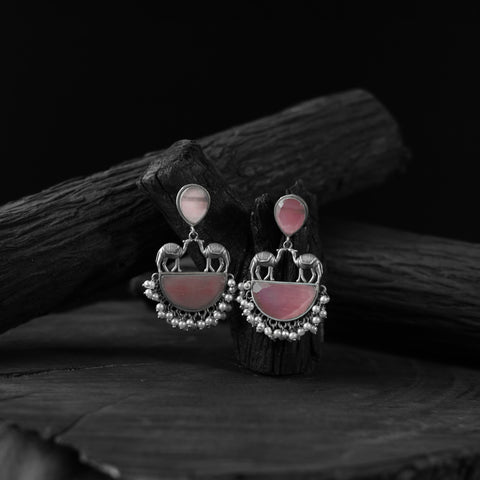 Oxidised handcrafted earrings made with a blend of metal, stones, pearls, beads, and fine detailing. Perfect for festive occasions, weddings, casual outings, office wear, or vacations. Their elegant black and silver tones pair beautifully with everything from casual jeans and flowy dresses to chic office ensembles. A meaningful gift for mother, sister, wife, or girlfriend adding a beautiful touch of tradition to every moment.