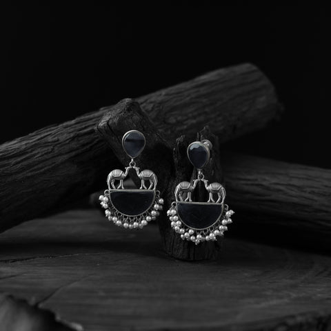 Saanjh Bela Dark Gray Camel Oxidised Earrings