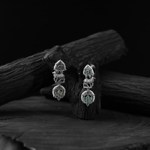 Saanjh Bela Gray & Green Nandi Oxidised Earrings
