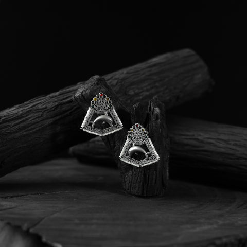 Oxidised handcrafted earrings made with a blend of metal, stones and fine detailing. Perfect for festive occasions, weddings, casual outings, office wear, or vacations. Their elegant black and silver tones pair beautifully with everything from casual jeans and flowy dresses to chic office ensembles. A meaningful gift for mother, sister, wife, or girlfriend adding a beautiful touch of tradition to every moment.