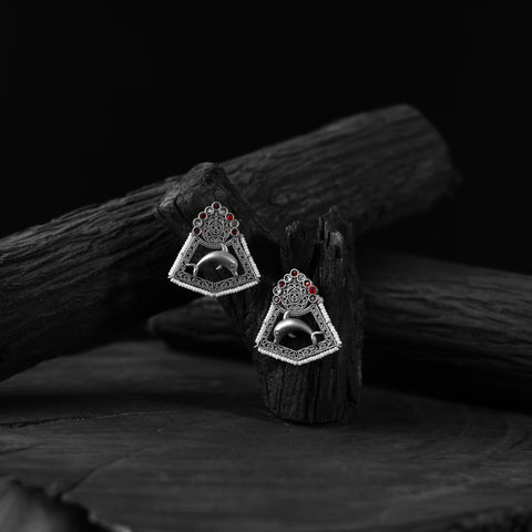 Oxidised handcrafted earrings made with a blend of metal, stones and fine detailing. Perfect for festive occasions, weddings, casual outings, office wear, or vacations. Their elegant black and silver tones pair beautifully with everything from casual jeans and flowy dresses to chic office ensembles. A meaningful gift for mother, sister, wife, or girlfriend adding a beautiful touch of tradition to every moment.