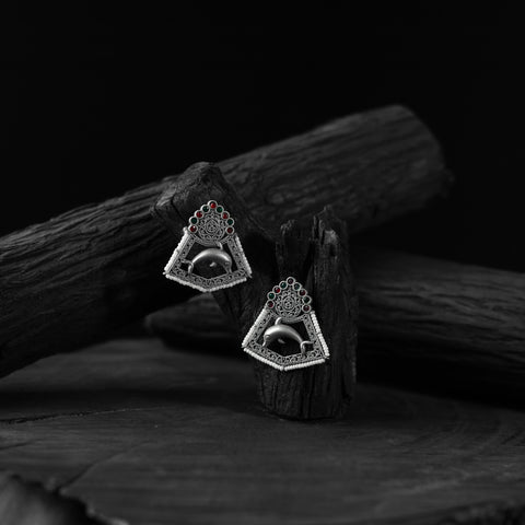 Oxidised handcrafted earrings made with a blend of metal, stones and fine detailing. Perfect for festive occasions, weddings, casual outings, office wear, or vacations. Their elegant black and silver tones pair beautifully with everything from casual jeans and flowy dresses to chic office ensembles. A meaningful gift for mother, sister, wife, or girlfriend adding a beautiful touch of tradition to every moment.