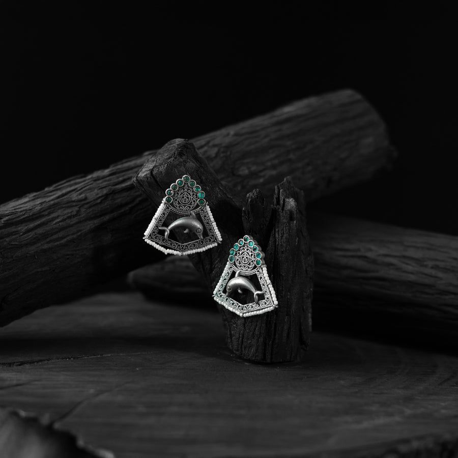 Saanjh Bela Green Dolphin Oxidised Earrings