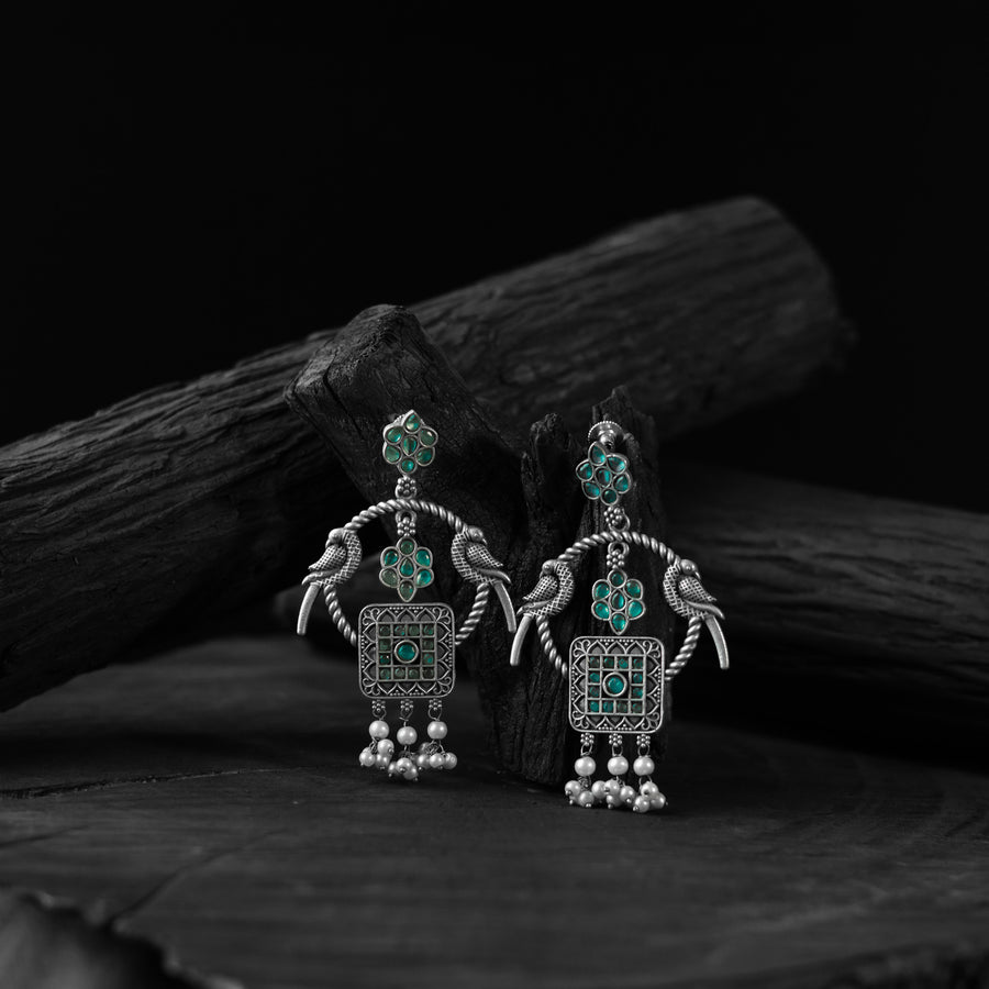Oxidised handcrafted earrings made with a blend of metal, stones, pearls, beads, and fine detailing. Perfect for festive occasions, weddings, casual outings, office wear, or vacations. Their elegant black and silver tones pair beautifully with everything from casual jeans and flowy dresses to chic office ensembles. A meaningful gift for mother, sister, wife, or girlfriend adding a beautiful touch of tradition to every moment.
