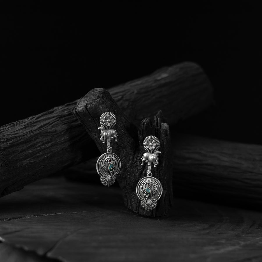 Oxidised handcrafted earrings made with a blend of metal, stones and fine detailing. Perfect for festive occasions, weddings, casual outings, office wear, or vacations. Their elegant black and silver tones pair beautifully with everything from casual jeans and flowy dresses to chic office ensembles. A meaningful gift for mother, sister, wife, or girlfriend adding a beautiful touch of tradition to every moment.