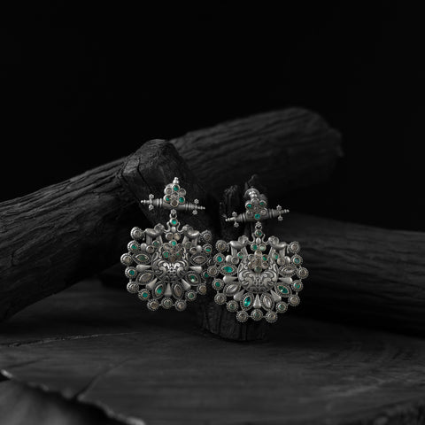 Oxidised handcrafted earrings made with a blend of metal, stones and fine detailing. Perfect for festive occasions, weddings, casual outings, office wear, or vacations. Their elegant black and silver tones pair beautifully with everything from casual jeans and flowy dresses to chic office ensembles. A meaningful gift for mother, sister, wife, or girlfriend adding a beautiful touch of tradition to every moment.