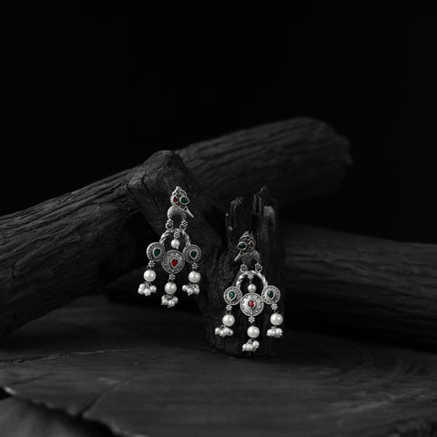 Oxidised handcrafted earrings made with a blend of metal, stones, pearls, beads, and fine detailing. Perfect for festive occasions, weddings, casual outings, office wear, or vacations. Their elegant black and silver tones pair beautifully with everything from casual jeans and flowy dresses to chic office ensembles. A meaningful gift for mother, sister, wife, or girlfriend adding a beautiful touch of tradition to every moment.