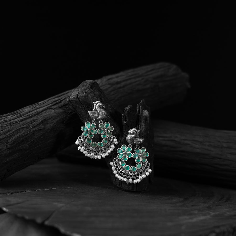 Bird Mint Green Saanjh Bela Oxidised Earrings