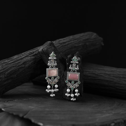 Saanjh Bela Pink & Green Seahorse Oxidised Earrings