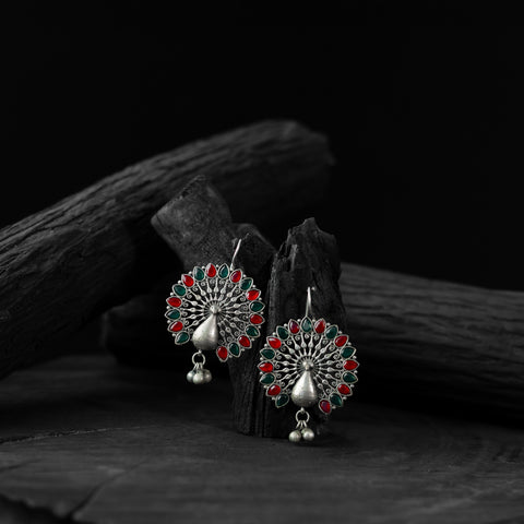 Saanjh Bela Mayuri Ruby & Green Oxidised Earrings