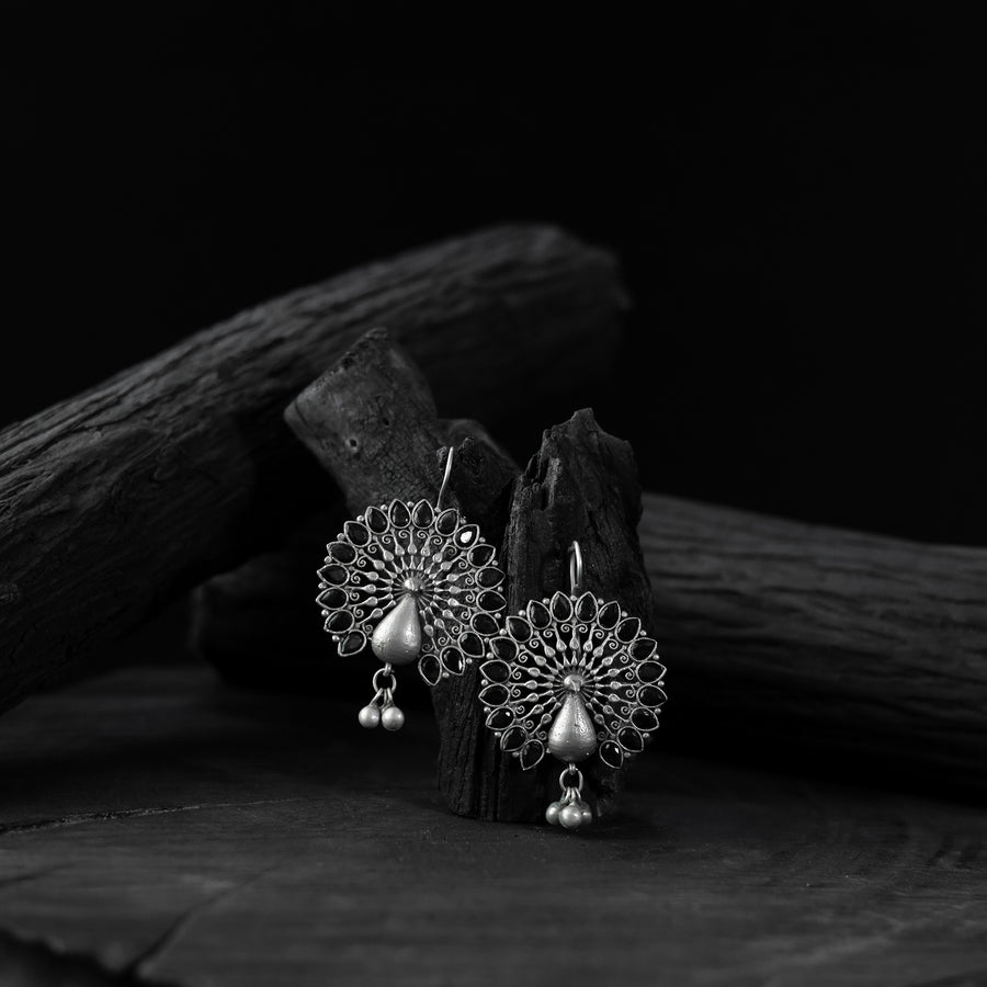 Oxidised handcrafted earrings made with a blend of metal, stones and fine detailing. Perfect for festive occasions, weddings, casual outings, office wear, or vacations. Their elegant black and silver tones pair beautifully with everything from casual jeans and flowy dresses to chic office ensembles. A meaningful gift for mother, sister, wife, or girlfriend adding a beautiful touch of tradition to every moment.