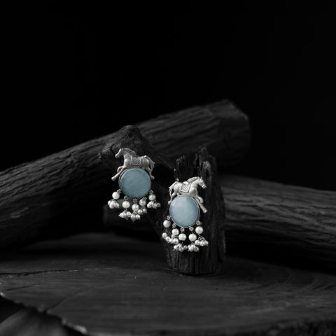 Saanjh Bela Sky Blue Horse Motif Oxidised Earrings