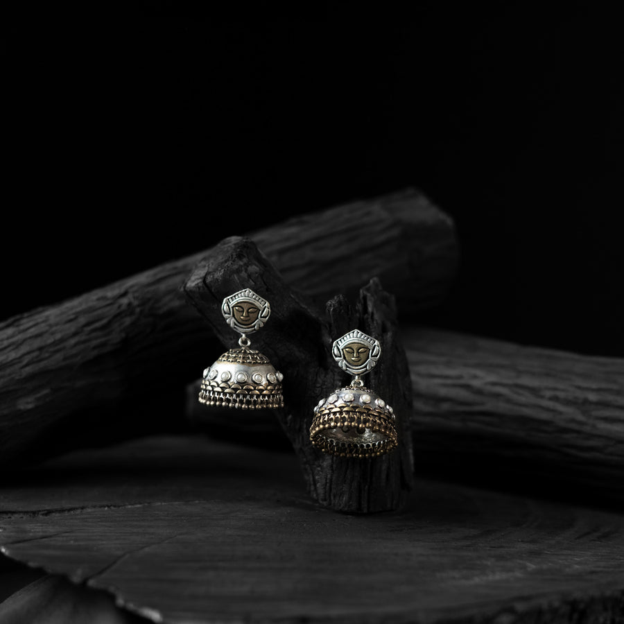 Oxidised handcrafted jhumka earrings made with a blend of metal, stones, pearls, beads, and fine detailing. Perfect for festive occasions, weddings, casual outings, office wear, or vacations. Their elegant black and silver tones pair beautifully with everything from casual jeans and flowy dresses to chic office ensembles. A meaningful gift for mother, sister, wife, or girlfriend adding a beautiful touch of tradition to every moment.