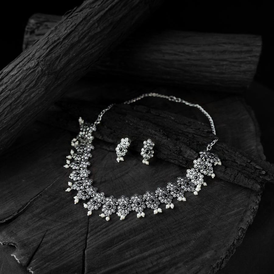 Saanjh Bela Black Flower Oxidised Necklace Set